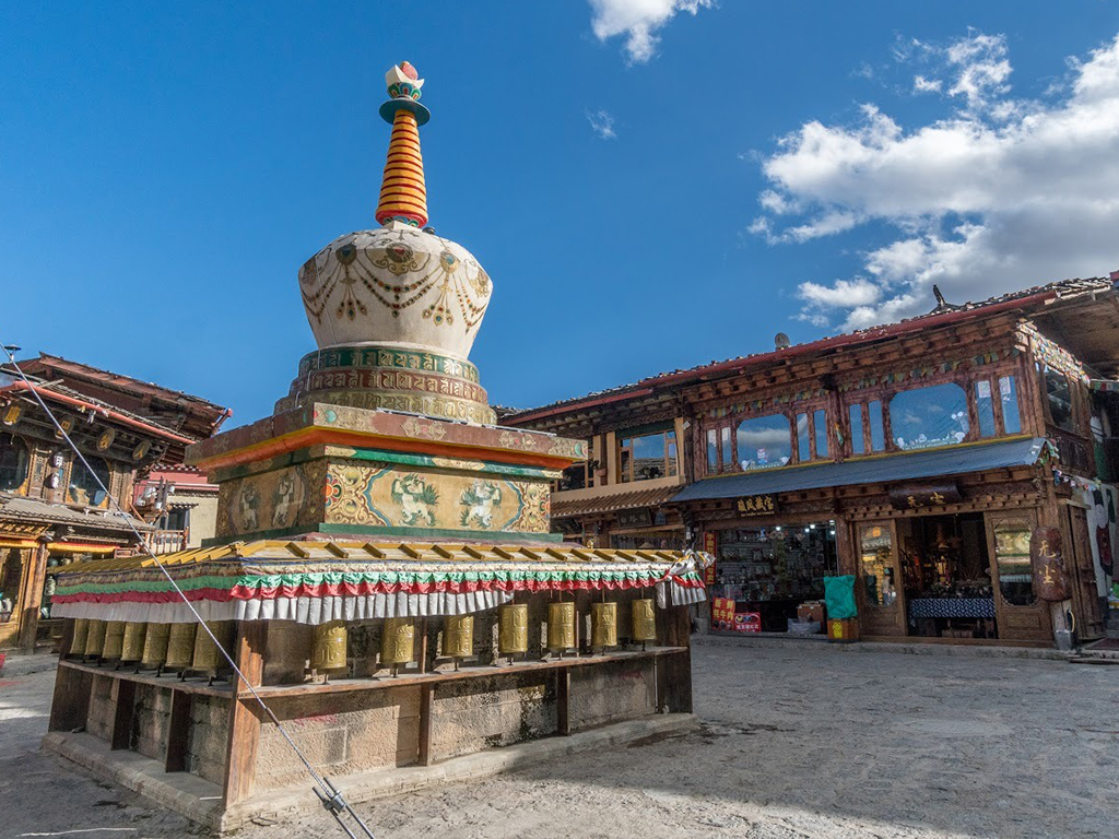 - Sau khi đến ShangriLa, quý khách ăn trưa. Sau đó tham quan “Tháp trong tháp” còn gọi là “Tháp Trắng” tạo nên một cảnh quan khác của Shangrila.