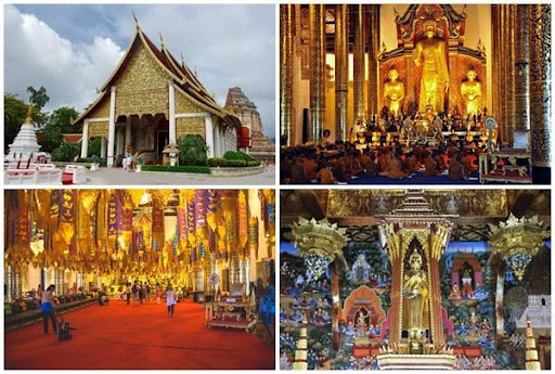 Wat Chedi Luang (Ngôi chùa cổ có lịch sử hơn 600 năm, Đại học Phật Giáo Chiang Mai) - Du khách sẽ ấn tượng với cảnh quan xung quanh đẹp tuyệt mĩ, trời xanh mây trắng mang đến cảm giác thanh bình thư thái đến lạ, cùng với đó là công trình kiến trúc chùa cổ với những đường nét điêu khắc sinh động thể hiện tài năng và thẩm mĩ của người dân Thái Lan xưa kia. Không chỉ có vậy, điều mà làm du khách ấn tượng nhất đó là hình ảnh xác của 3 vị sư trong tư thế ngồi thiền, vô cùng ung dung tự tại như vẫn đang còn sống với da dẻ hồng hào, đôi mắt sáng đang mở, mà điều bí ẩn chưa thể lý giải được là cả 3 vị sư đều không sử dụng hóa chất ướp và giữ xác.